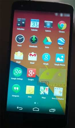 A new batch of leaked photos of Nexus 5 running on KitKat operating system has revealed some of the new features that the next Android update will have. The photos come courtesy Italian technology website TuttoAndroid and show that the Notification Bar, which have remained solid black in colour till now, will be transparent and icons like battery, signal strength etc will be white. Same is the case with Navigation Bar, where the Home, Back and App Switcher software keys are located.